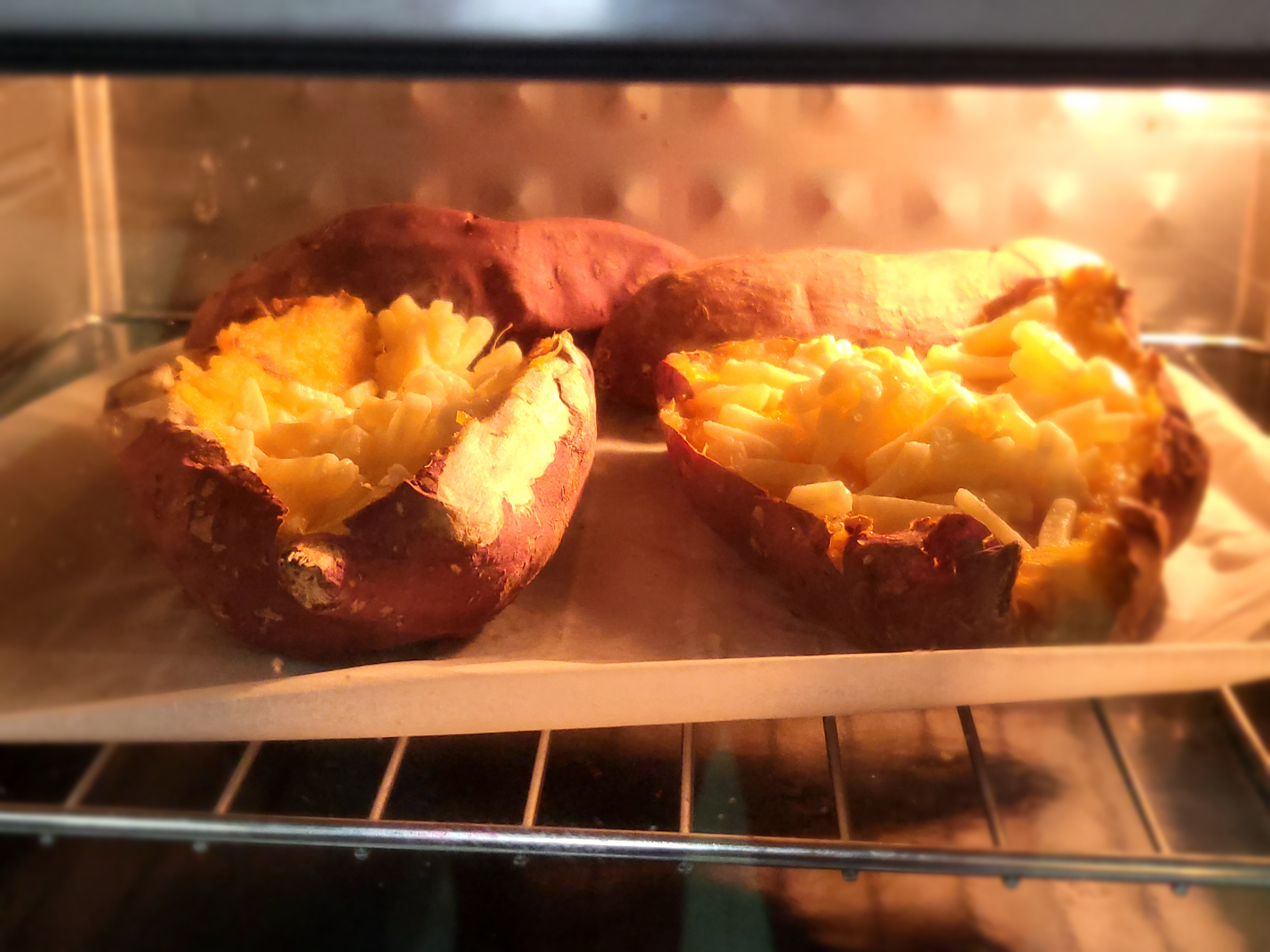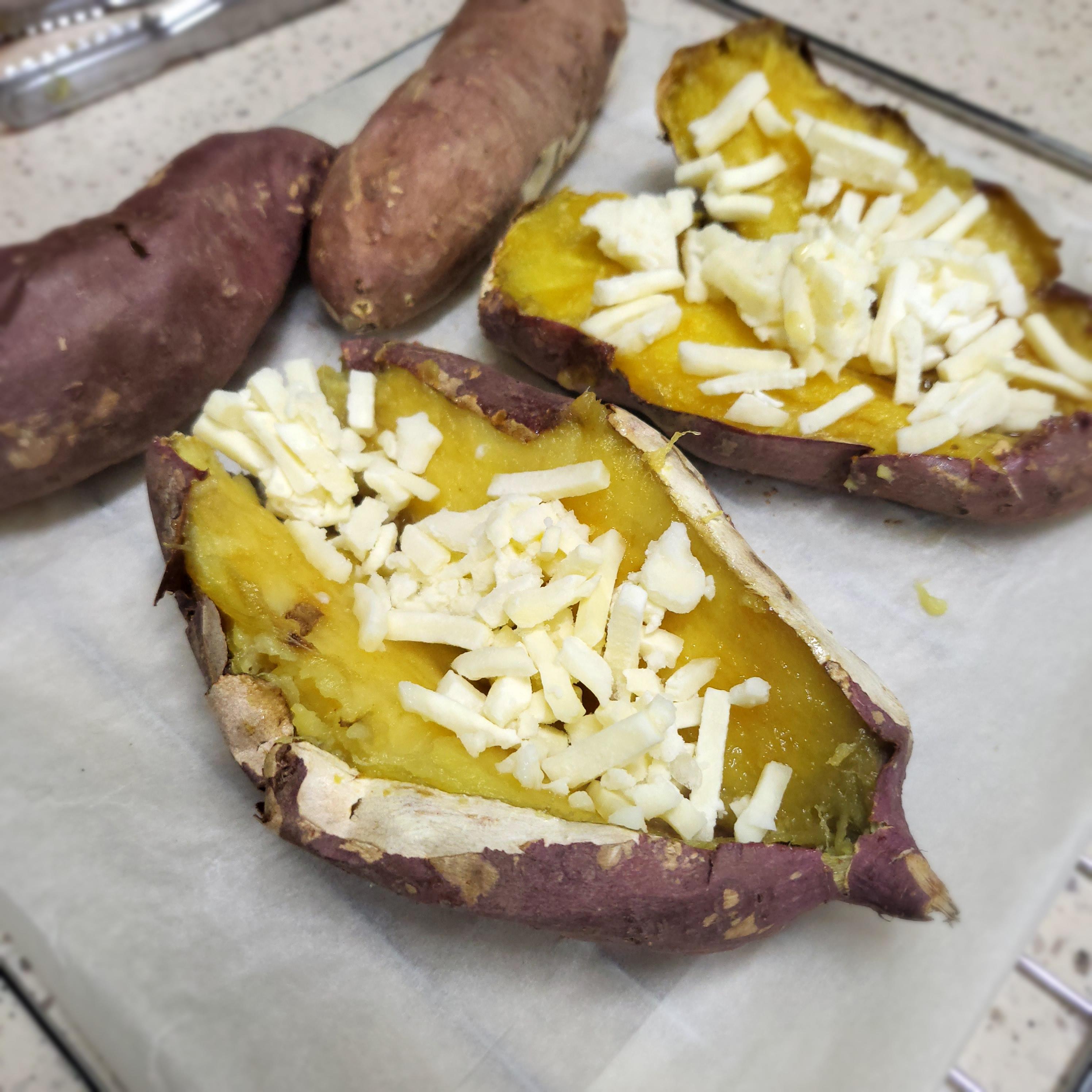 고구마, 버터, 꿀 또는 연유, 치즈