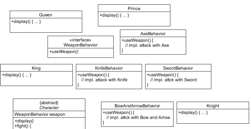 | void setWeapon (WeaponBehavior w) { this.weapon = w; } |