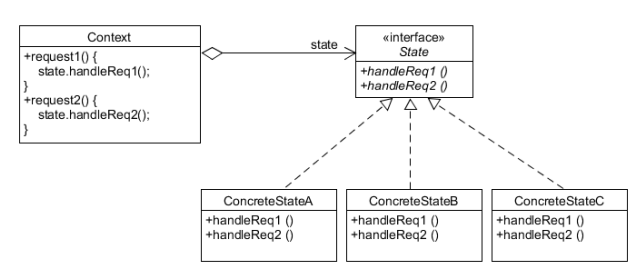 → Encapsulates a state-dependent behavior and delegate behavior to the current states