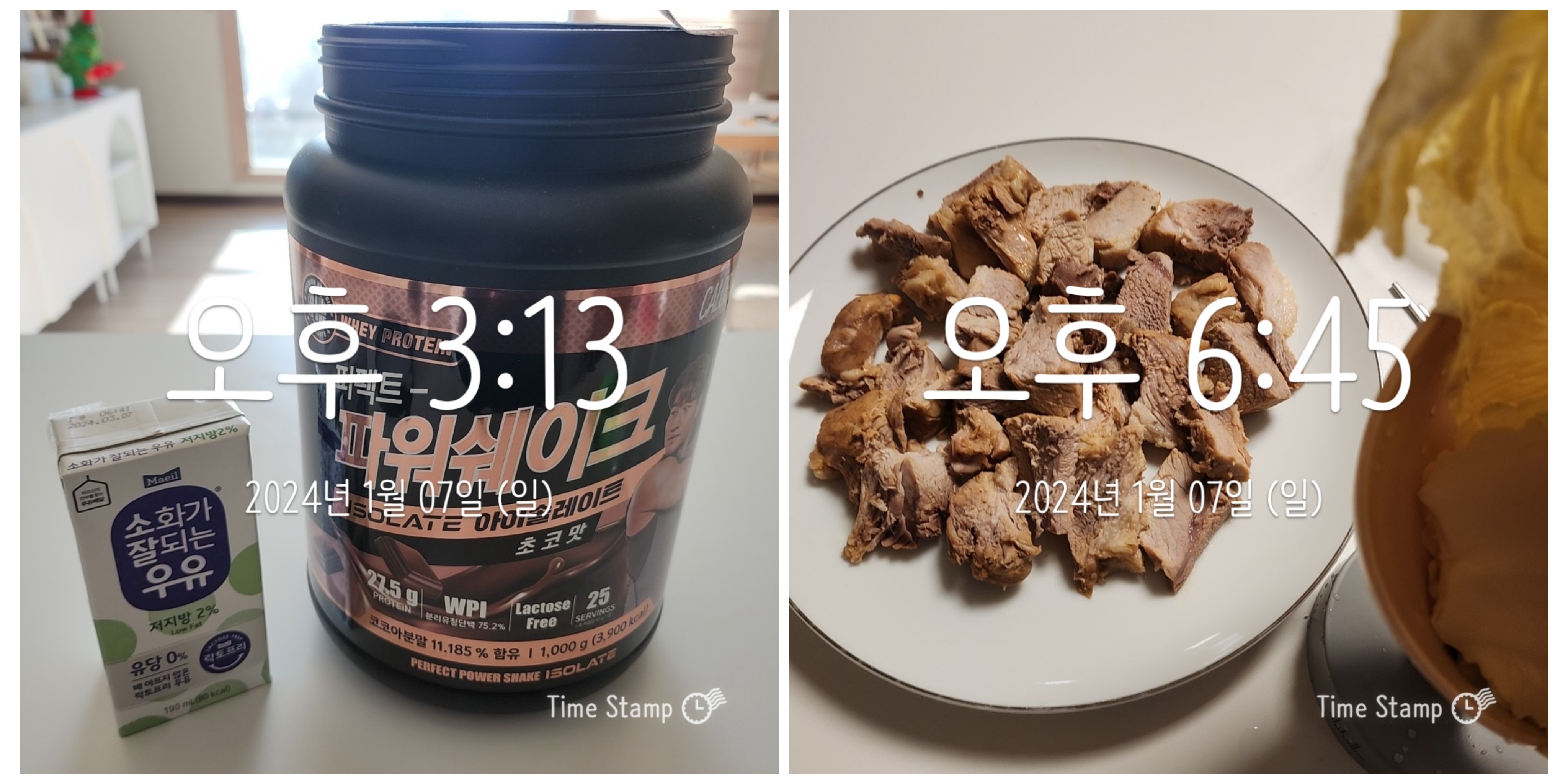 | 저녁 | 단백질쉐이크, 유산균, 칼슘 마그네슘 2정, 비타민D | |