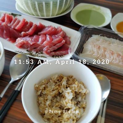 점심 : 귀리밥 1/2 , 참치회, 광어회, 상추, 와사비, 들기름